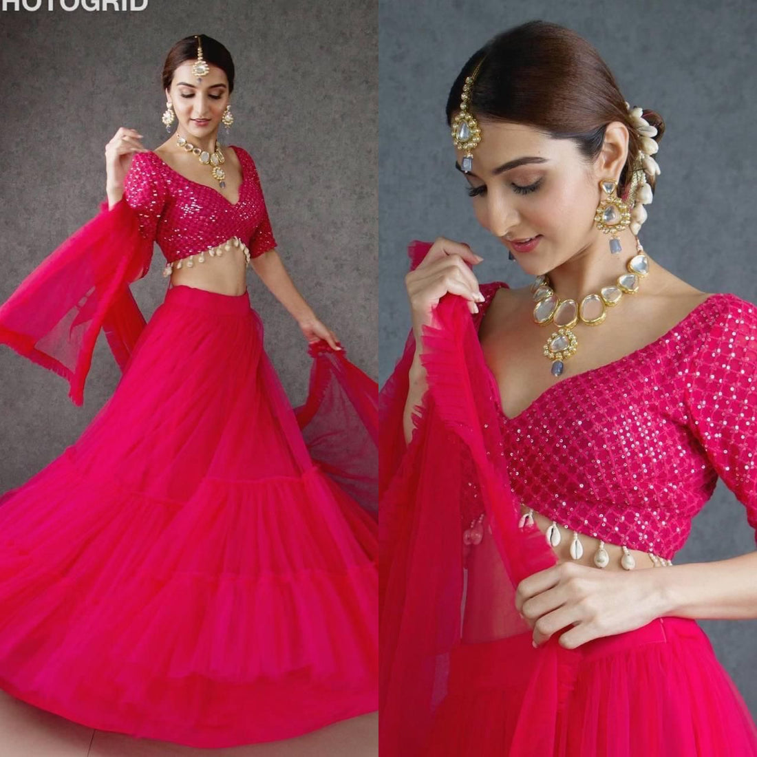 FABRIC DETAILS : BLOUSE : soft silk with sequins work WORK : SEQUINS LEHENGA :...