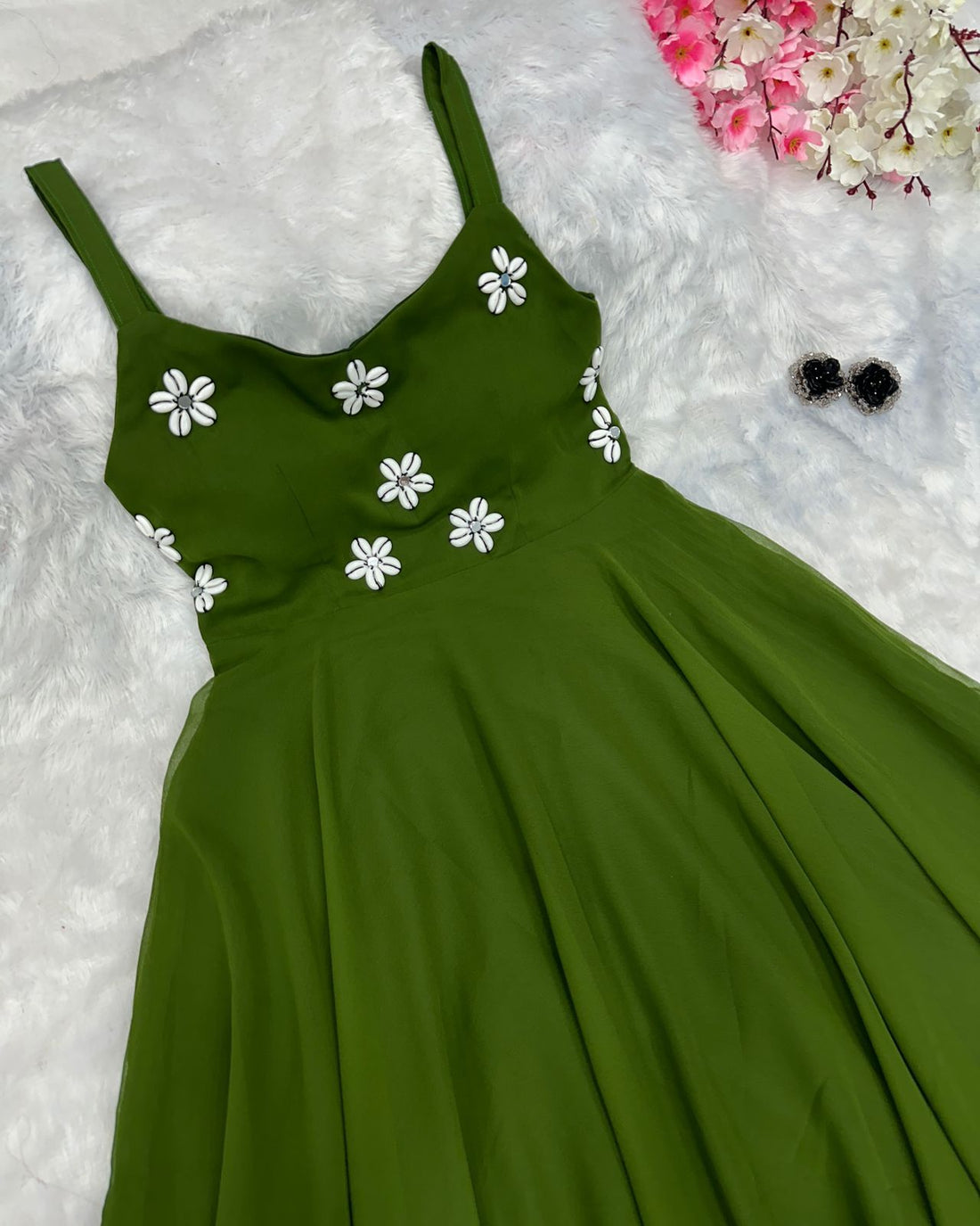 Anarkali Anarkali Gown - Pure Georgette fabric Anarkali Gown with 8-meter huge Flare 🌸 Work...