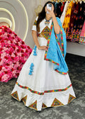 Work : Chain stitched With Real Mirror Work With Lace Border (Free size,Fully Stitch)