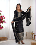 Exude sophistication with this Wine Color Chinon Silk Three-Piece Kurti Suit. Crafted from rich Chinon silk, it includes a stylish kurti, matching bottom, and dupatta—perfect for festive events and elegant gatherings.