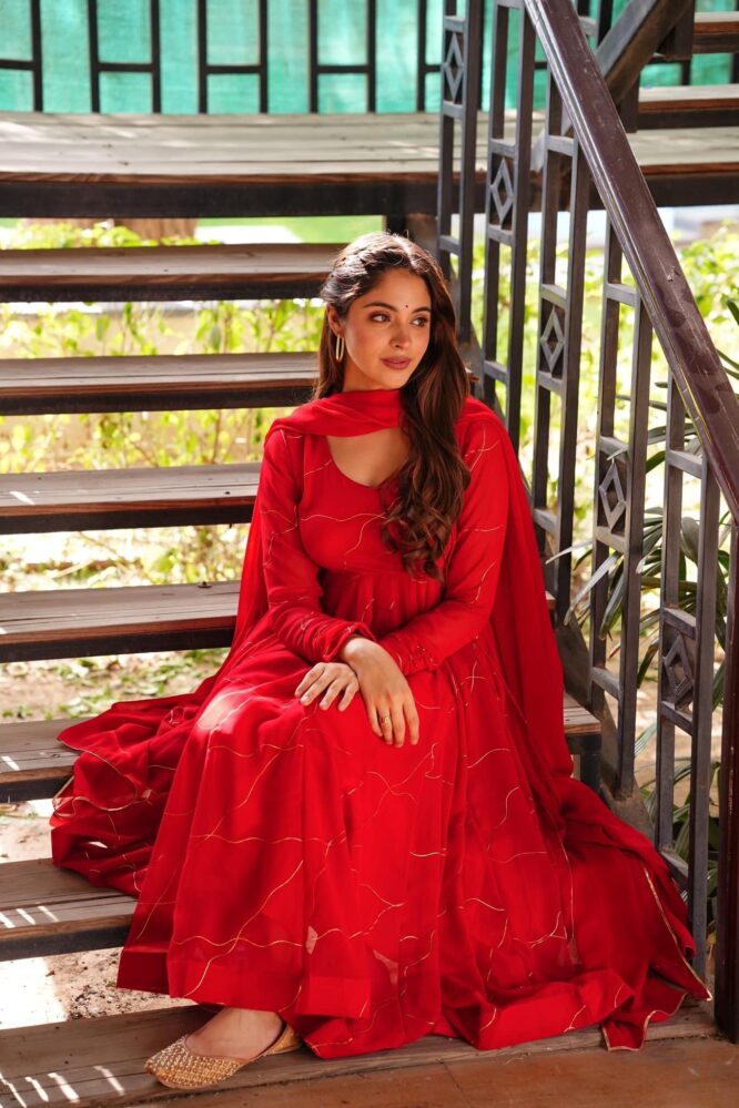 BLOOMING RED GEORGETTE SUIT SET TD-103