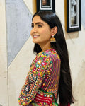 Choli : Soft Muslin Cotton With Real Mirror Work And Handwork Lace (1.2 Meters)
