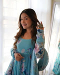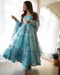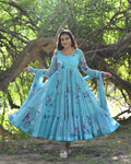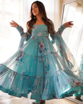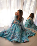 Drape yourself in ethereal beauty with our Blue Anarkali Gown. Crafted with care, this gown features a mesmerizing shade of blue that radiates sophistication. The flowing Anarkali silhouette adds a touch of grace, while the intricate detailing on the bodice and hemline enhances its allure. Whether it's a festive celebration or a special event, this gown is designed to make you stand out with its timeless elegance.