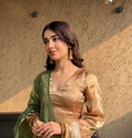 Chiku Silk Anarkali Set with Green Dupatta & Bell Sleeves