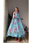Aniska Sky Blue Floral Print Anarkali Suit