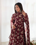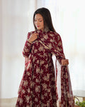 Dark Maroon Floral Printed Georgette Anarkali Suit