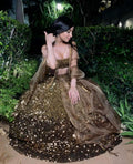 Lehenga: This exquisite lehenga is made from premium Tapeta Satin Silk and is beautifully embellished with all-over sequins. It features a heavy cancan with double inner lining, providing a flair of 4 meters.