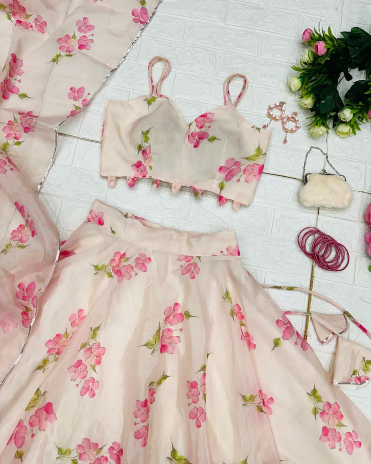 Delightful Off White Color organza Lehenga Choli