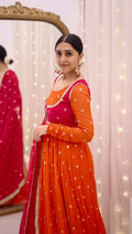 ✔ Anarkali Gown – Heavy faux georgette with embroidery & sequin work, featuring a stunning 7-meter flair for a royal look