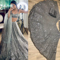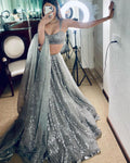 This resplendent lehenga features intricate silver embellishments that flash and shimmer with every step, adding a touch of glamour to your special occasion. The striking gray hue provides a modern twist to the classic bridal look, making it perfect for the fashion-forward bride who seeks both sophistication and a hint of playfulness. Crafted with meticulous attention to detail and tailored for comfort, this lehenga is sure to make you the center of attention on your big day. Illuminate your wedding festivities with the radiant charm of our Flashing Gray Lehenga.