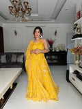 Glimmering Haldi wear Yellow Color Jimmy Organza Lehenga Choli