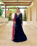 This enchanting gown features a rich shade of blue that exudes elegance, complemented by a flattering silhouette that gracefully accentuates your curves. The delicate detailing and thoughtful design add a touch of glamour, making it the perfect choice for special occasions and formal events. Embrace a sense of grace and allure with this exquisite gown that effortlessly combines timeless beauty with contemporary flair.
