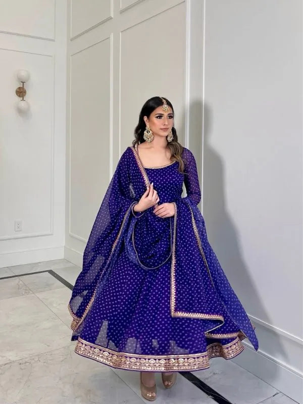 This elegant Designer Kurta Suit Set is crafted from heavy Faux Georgette fabric, featuring exquisite premium embroidery work. The set includes a Kurta, Bottom, and Dupatta, offering a perfect combination of style and comfort for any special occasion.