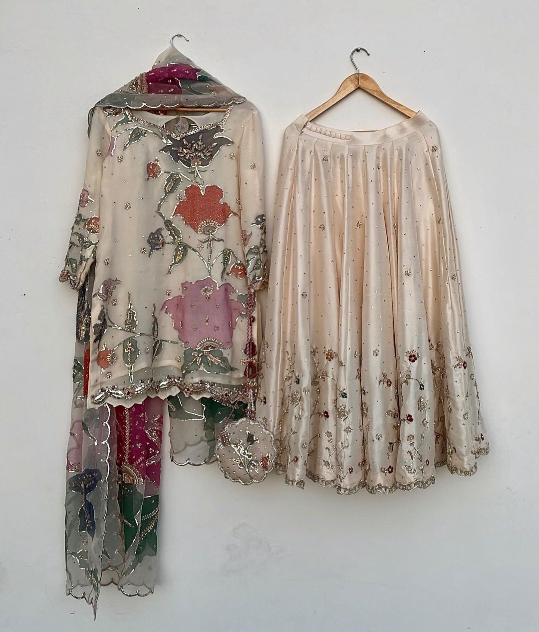 Top : Heavy Silk Hand Printed Floral Top With Textured Sequence Work
