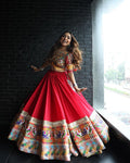 LEHENGA : Heavy muslin cotton with digital print and real mirror work (fully stitched with canvas patta and 4 meters flair)