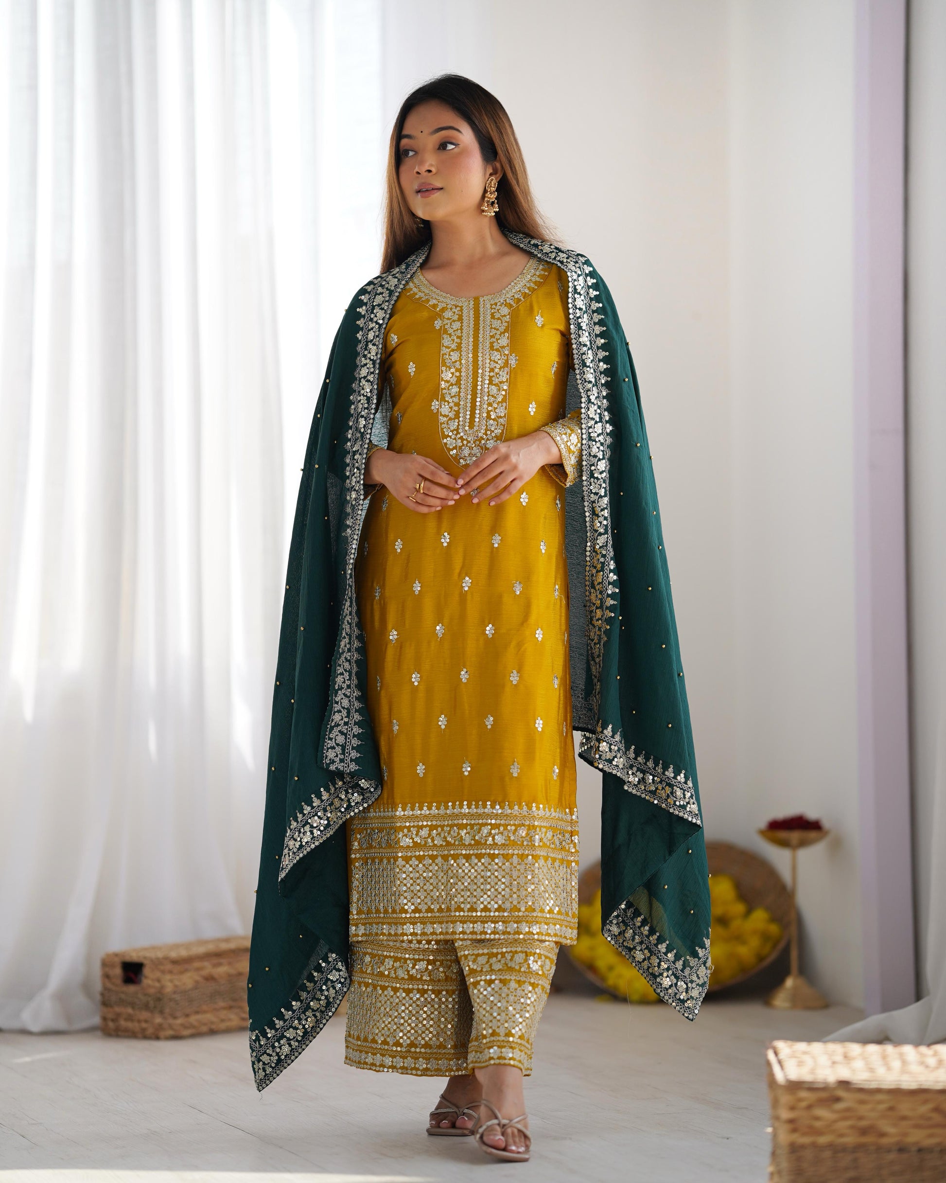 FABRIC : Chinnon Silk with Heavy Embroidery Sequence Work and Full Sleeves (Fully stitched)