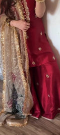 SHARARA : Fully stitched and fully flared sharara with zardozi and cut daana.
