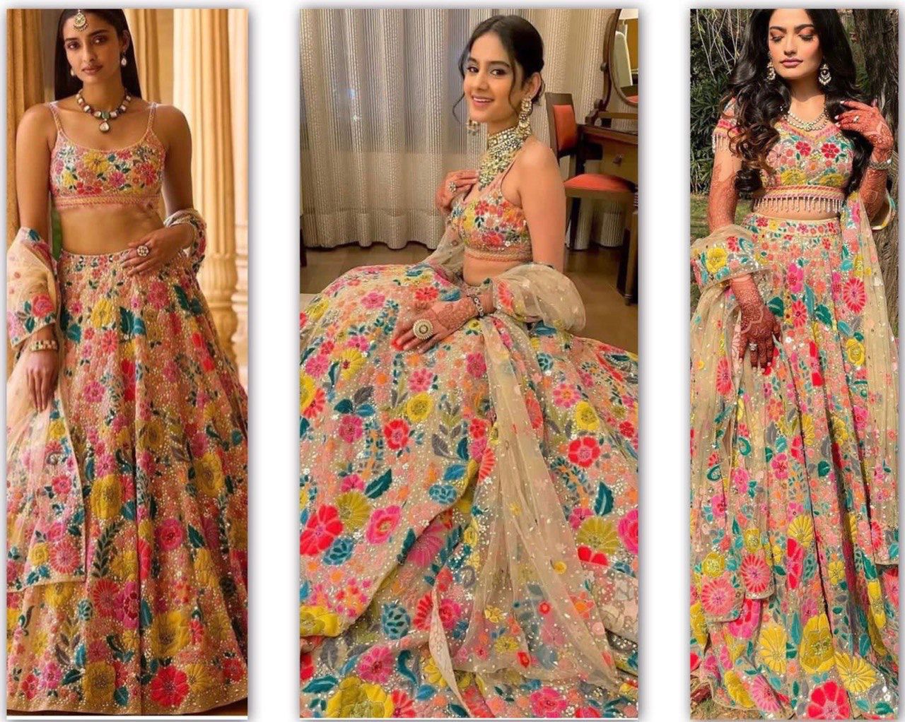 Work: Sequence embroidery thread work lehenga with cancan & canvas patta