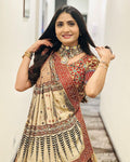 LEHENGA: Heavy muslin cotton with digital print and real mirror work (4 mtr flair)