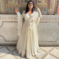 White Lakhnawi Embroidered Georgette Fully Stitched Long Anarkali Suit Set