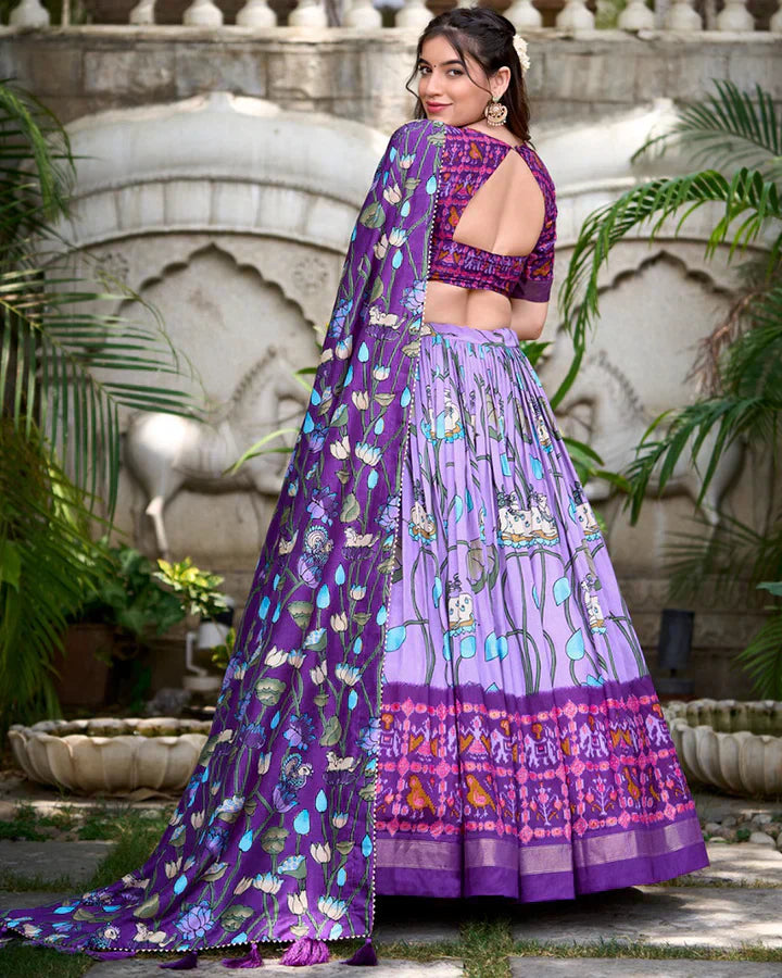 Lehenga Work : Pichwai With Patola Print And Zari Weaving Border