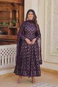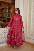 LIKSHA 2 COLOUR RANI & WINE EMBROIDERED GEORGETTE ANARKALI FULLY STITCHED SUIT SET -TD 124-