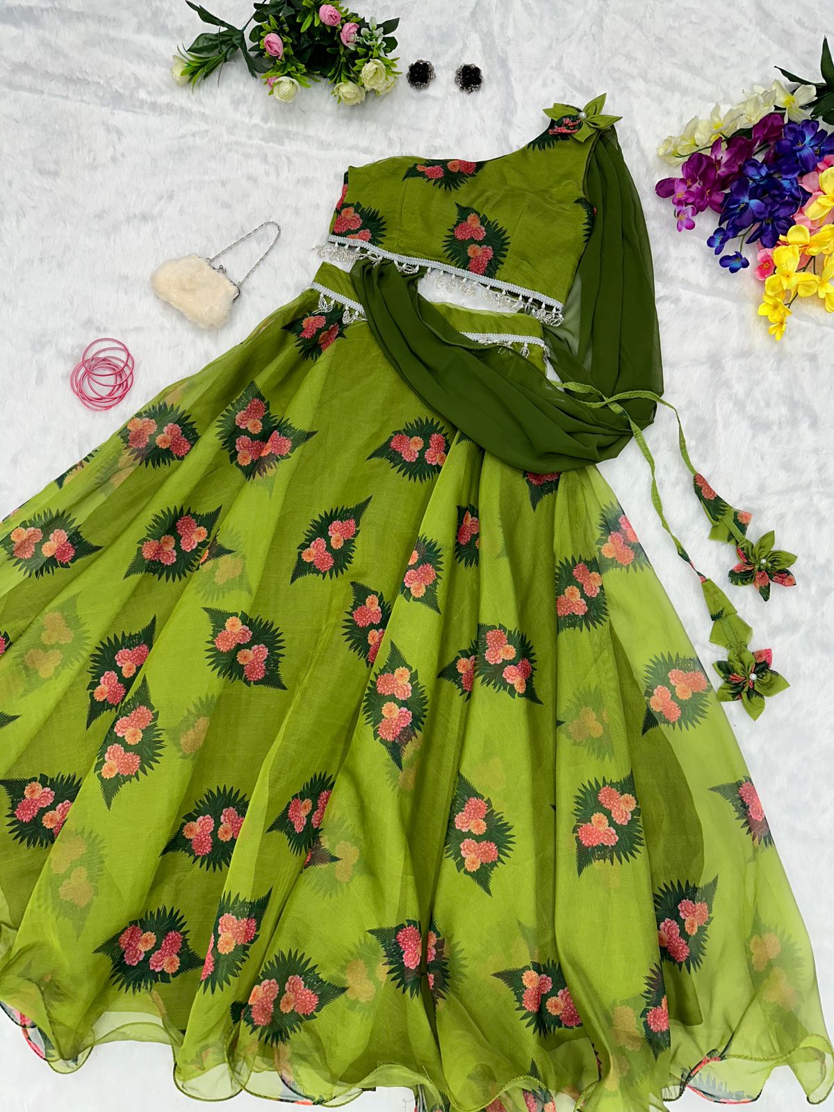 Lovely Organza Silk Green Color Lehenga With Stylish Blouse