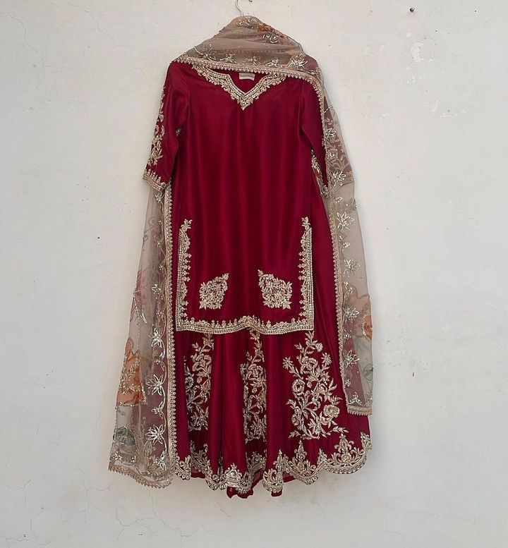 Fully Stitched and Fully Flared Sharara with zardosi and cut daana