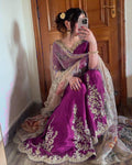 Satin Silk With intricate hand Embroidery and cut daana work