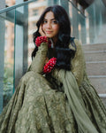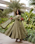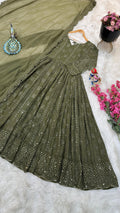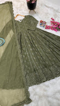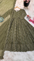 Mehndi Green Color Thread Sequence Work Gown