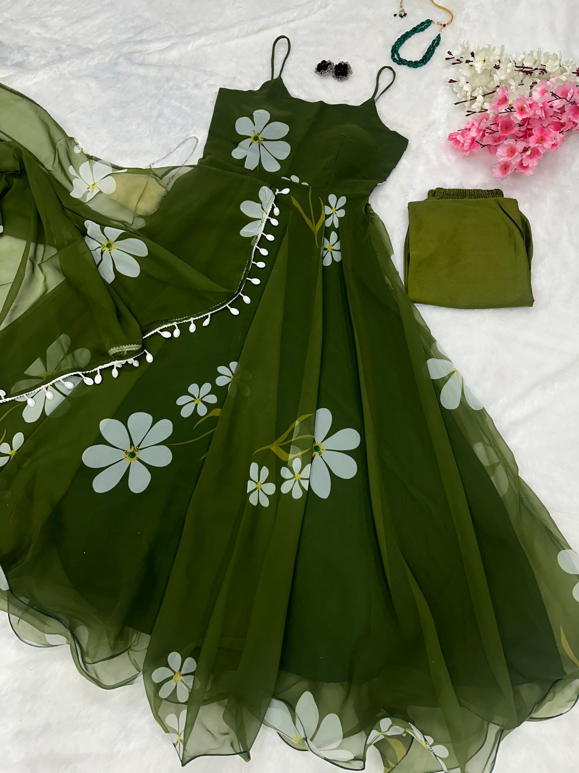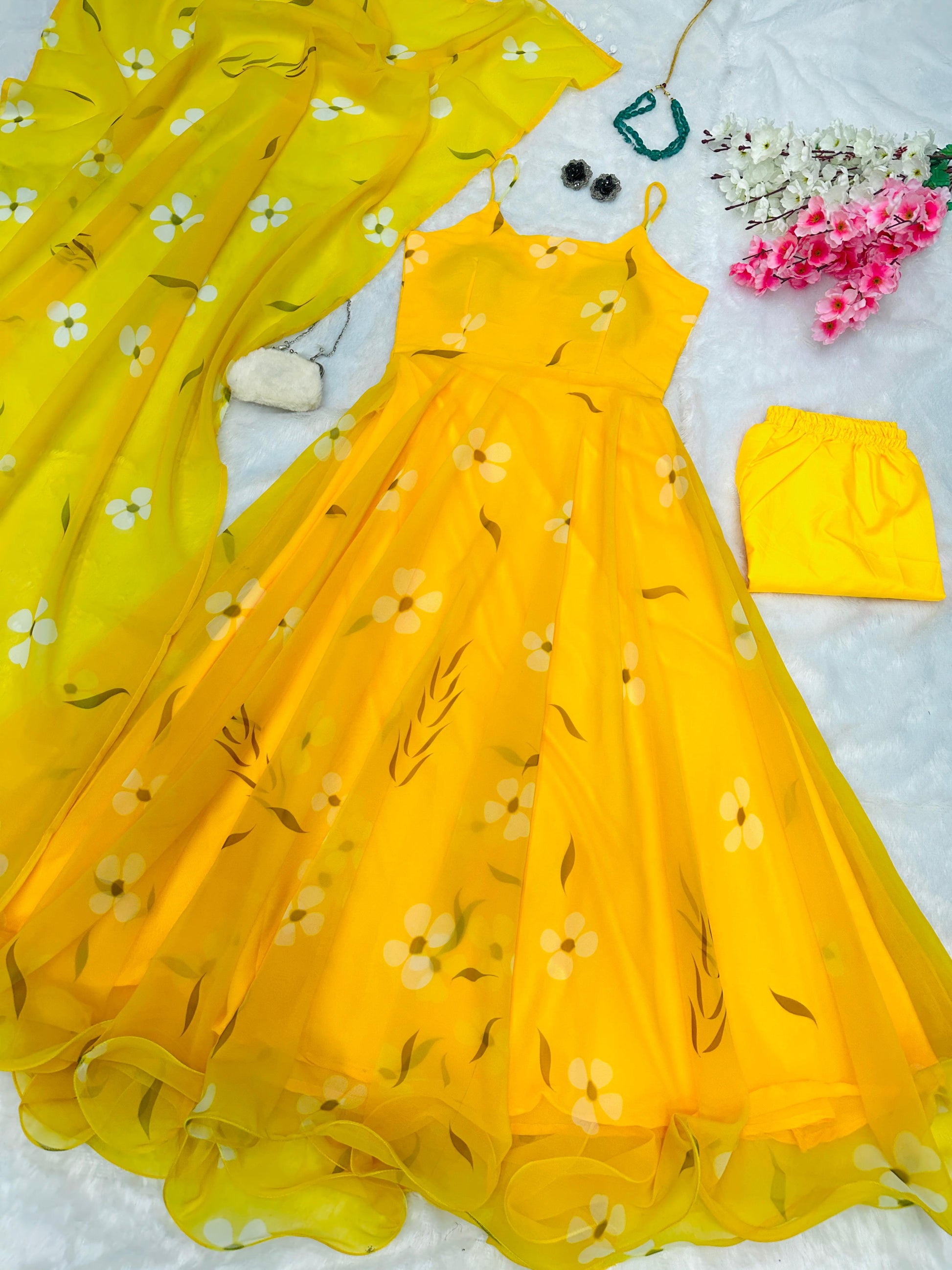 Anarkali : Digital Printed Georgette Silk Anarkali Suit With Huge Flair