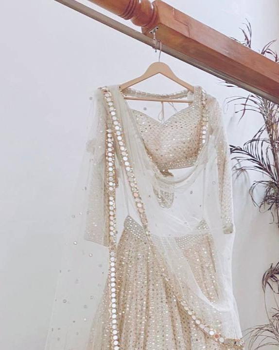 EHENGA : Georgette lehenga with heavy sequins and thread work with can-can attach.