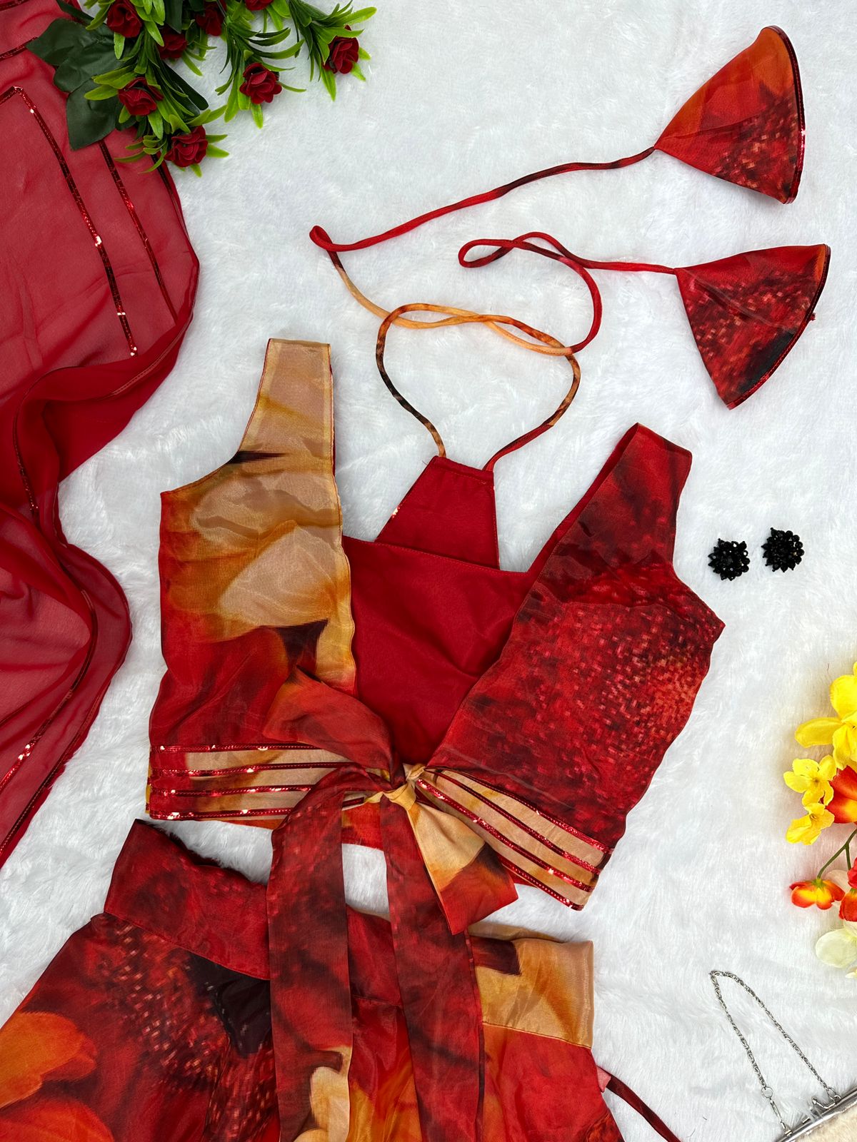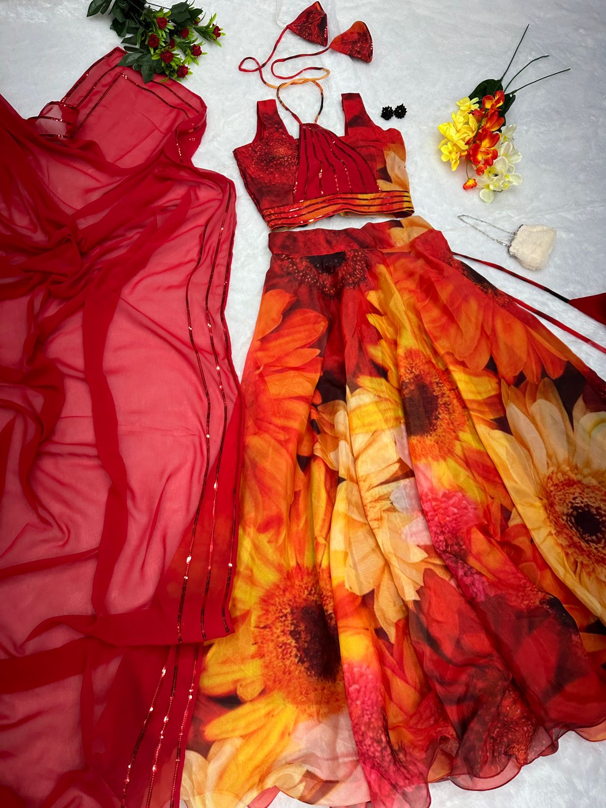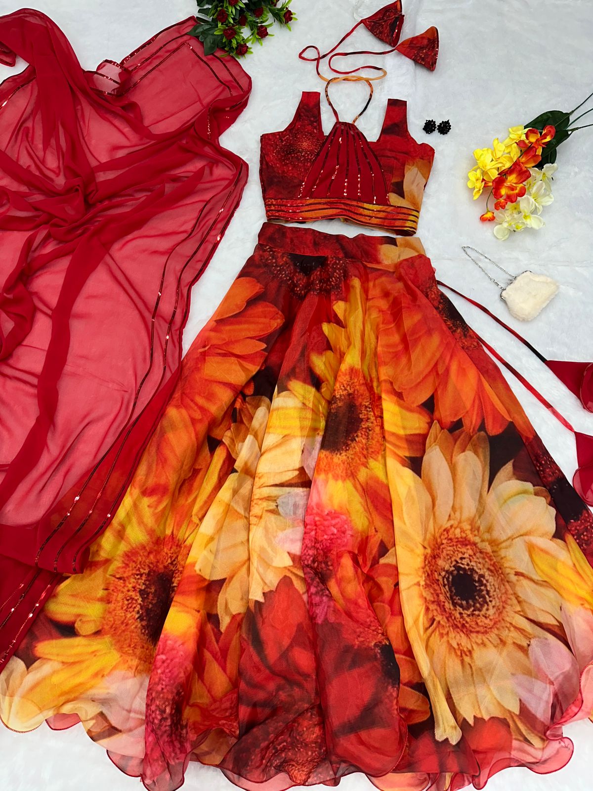 Multi Color Organza Digital Printed Lehenga Choli