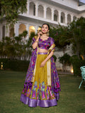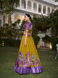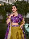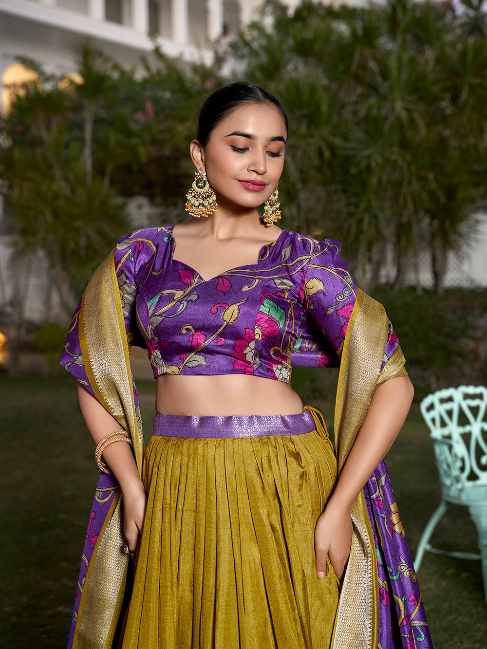 Mustard Color Dola Silk Kalamkari Printed Lehenga Choli