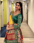 Embrace the divine grace of Navdurga with our exquisite Navdurga Poshak Lehenga Choli. Inspired by the celestial energy of the nine goddesses, this ensemble is crafted with intricate details and vibrant colors, symbolizing strength, beauty, and devotion. Elevate your Navratri celebrations with this stunning attire, perfectly tailored to adorn you as you dance in reverence to the divine feminine energy.