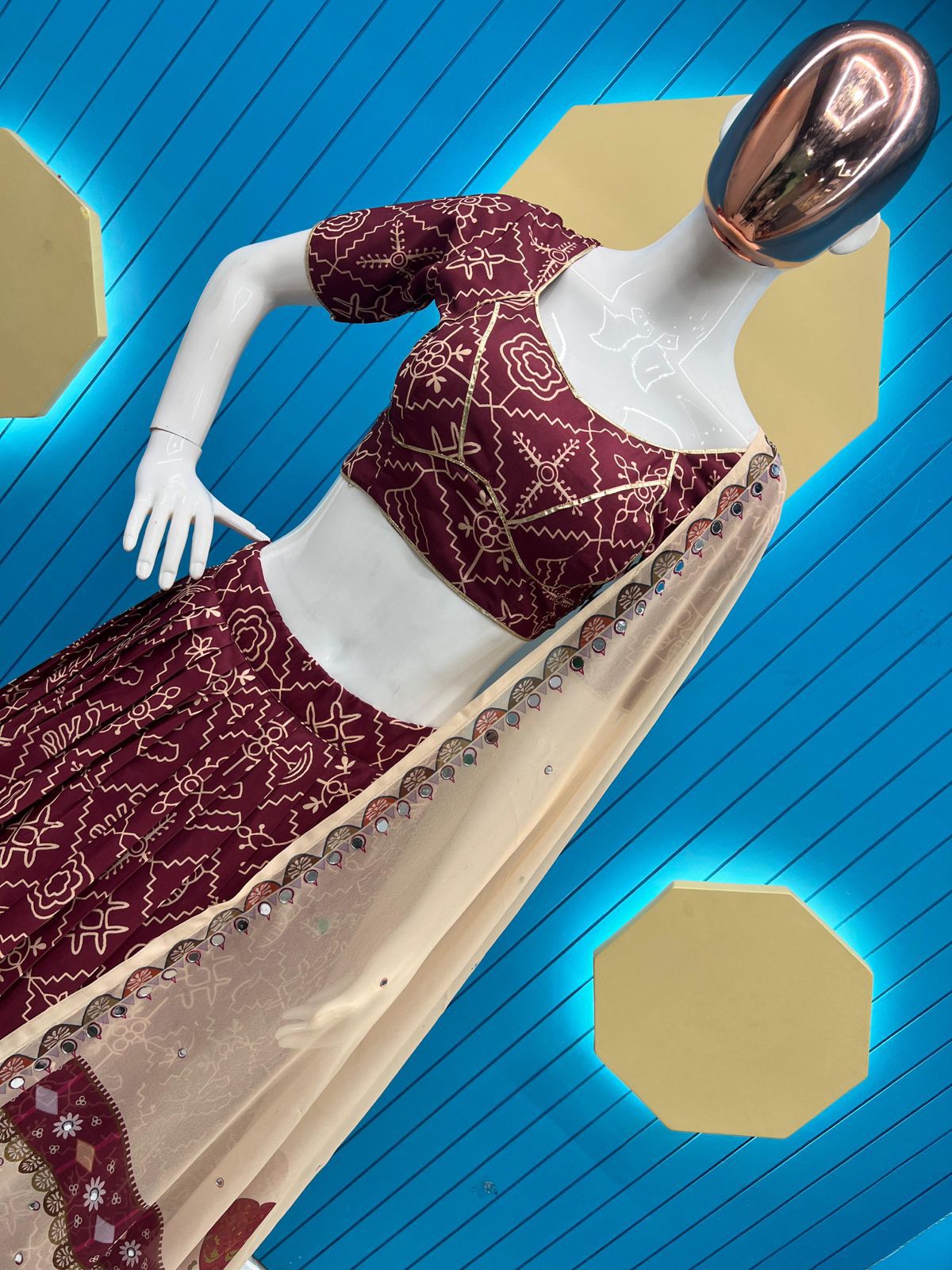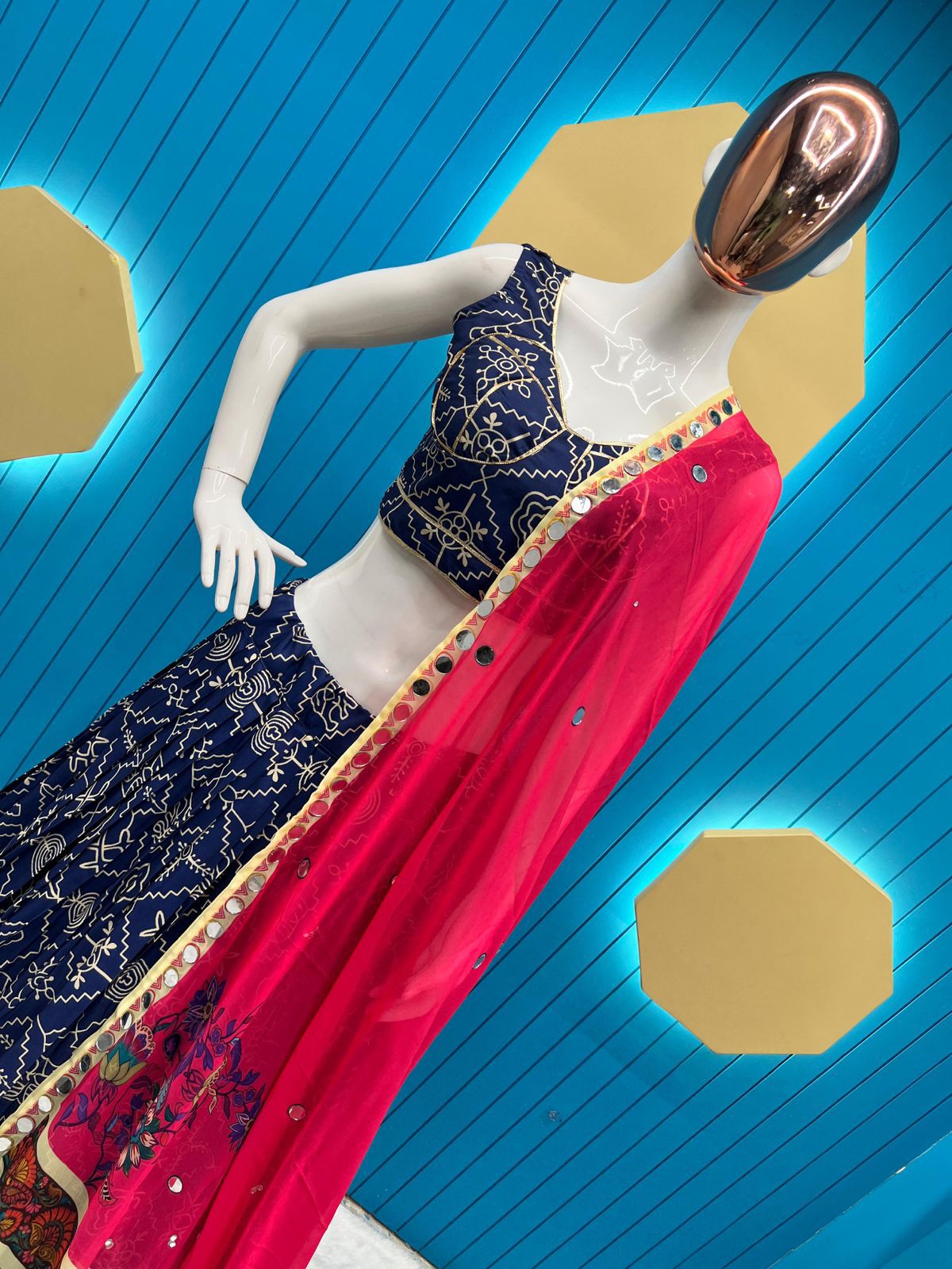Dupatta : Georgette With Digital Print and Mirror Work (2.2 Meters)