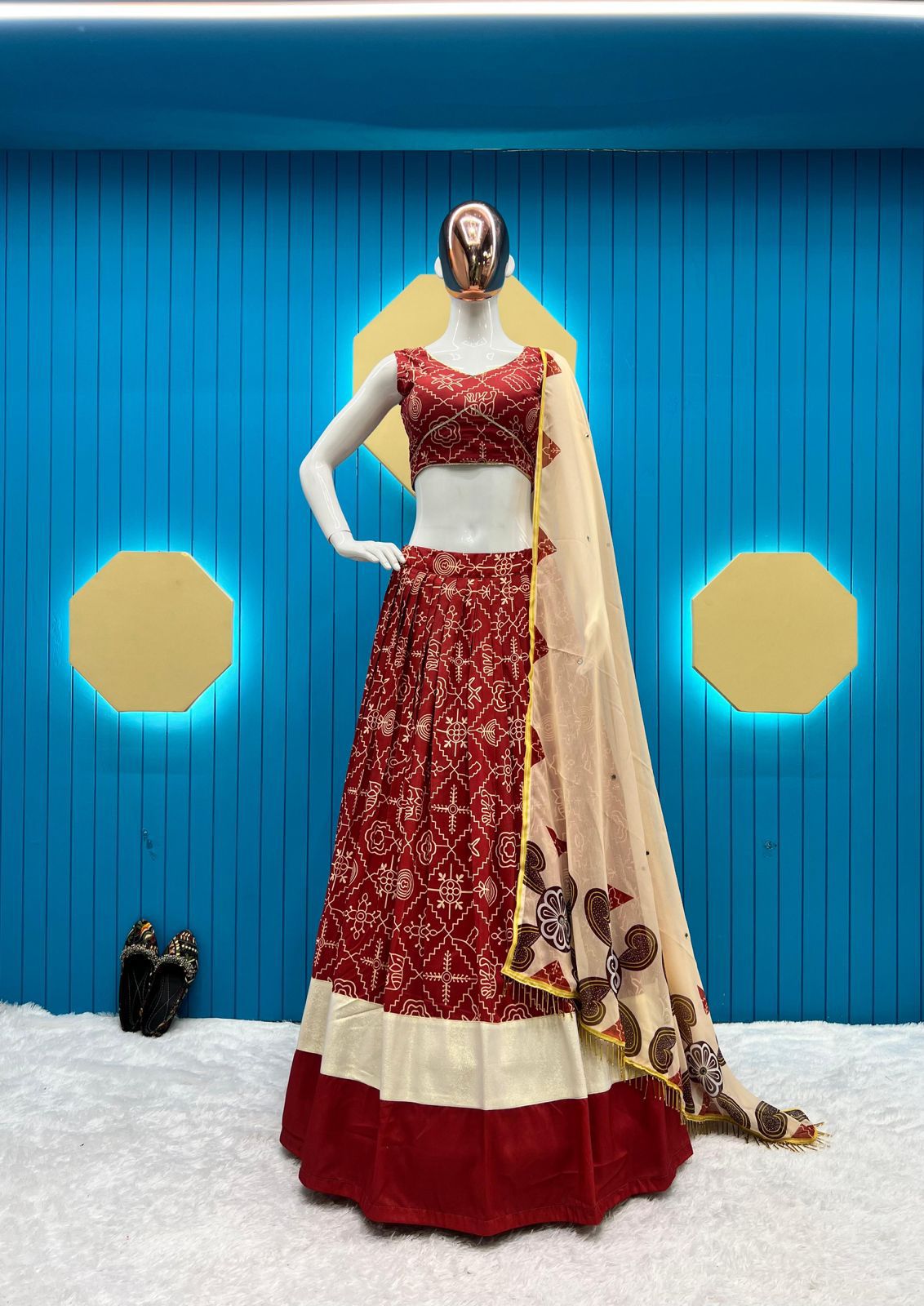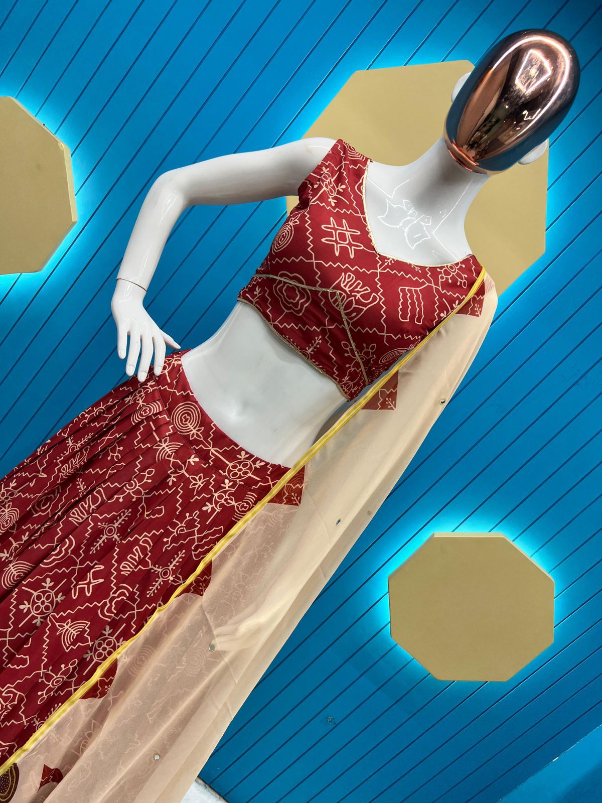 Choli : Maslin Printed and Lace Work (Unstitched 1.2 Meters)
