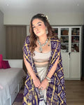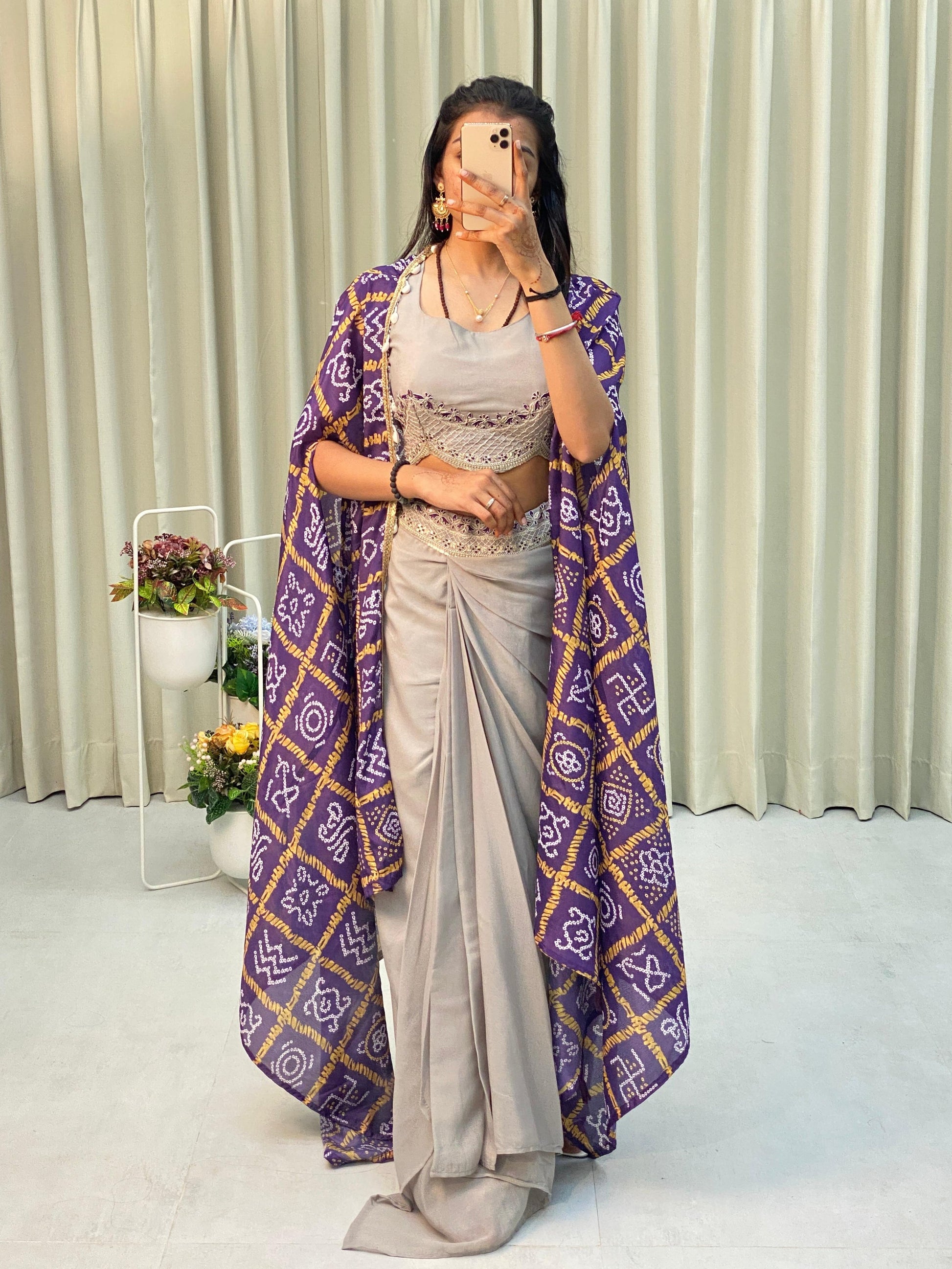 SHRUG : Chinon fabric, printed and latkan with kodi lace work (fully stitched)