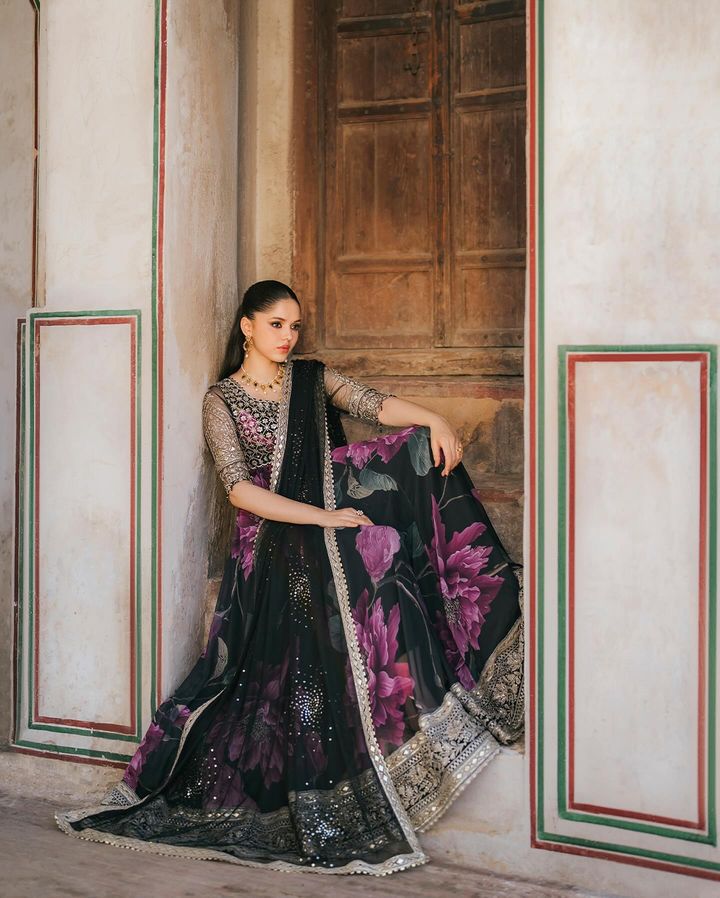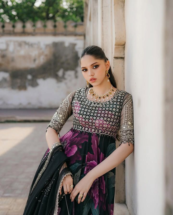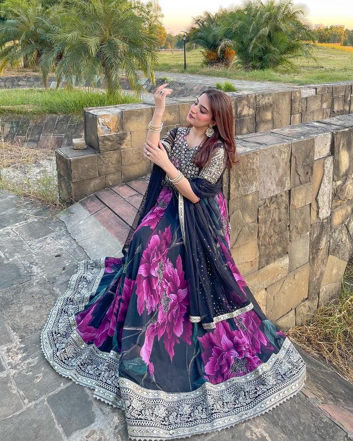 TOP : Georgette fabric with digital print, thread with Sequins and lace border.