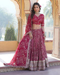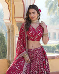 Design Rani Pink Color Sequence Embroidered Jacquard Lehenga Choli