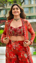 Set Includes: 1 Koti, 1 Blouse (unstitched), 1 Plazzo