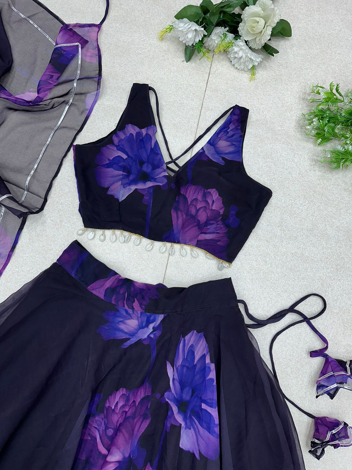 Purple Digital Printed Black Color Pretty Lehenga Choli
