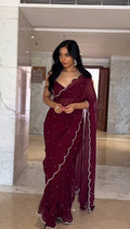 Saree : Premium Georgette Embellished With Beautiful Hand Pearl work With Cutwork Border