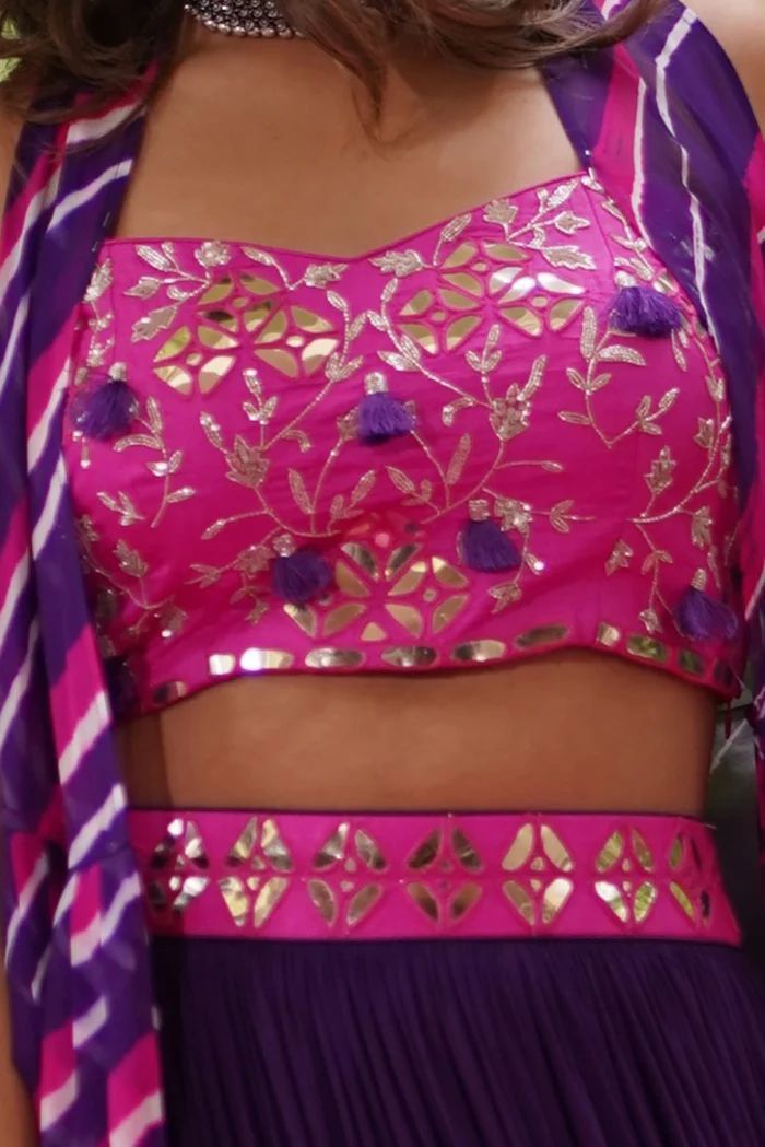 Blouse : Premium Mono Silk Embellished With Beautiful Foil Mirror Work And Beautiful Latkan (Unstitched )