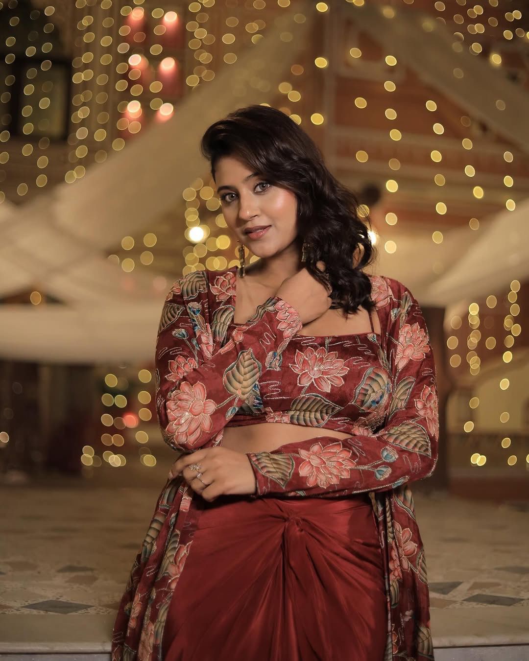Red Floral Charm Three Piece Jacket Set