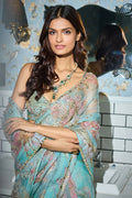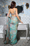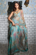 SAREE FABRIC : Soft Tabby Silk with Digital Print, Embroidery, and Mirror Work.