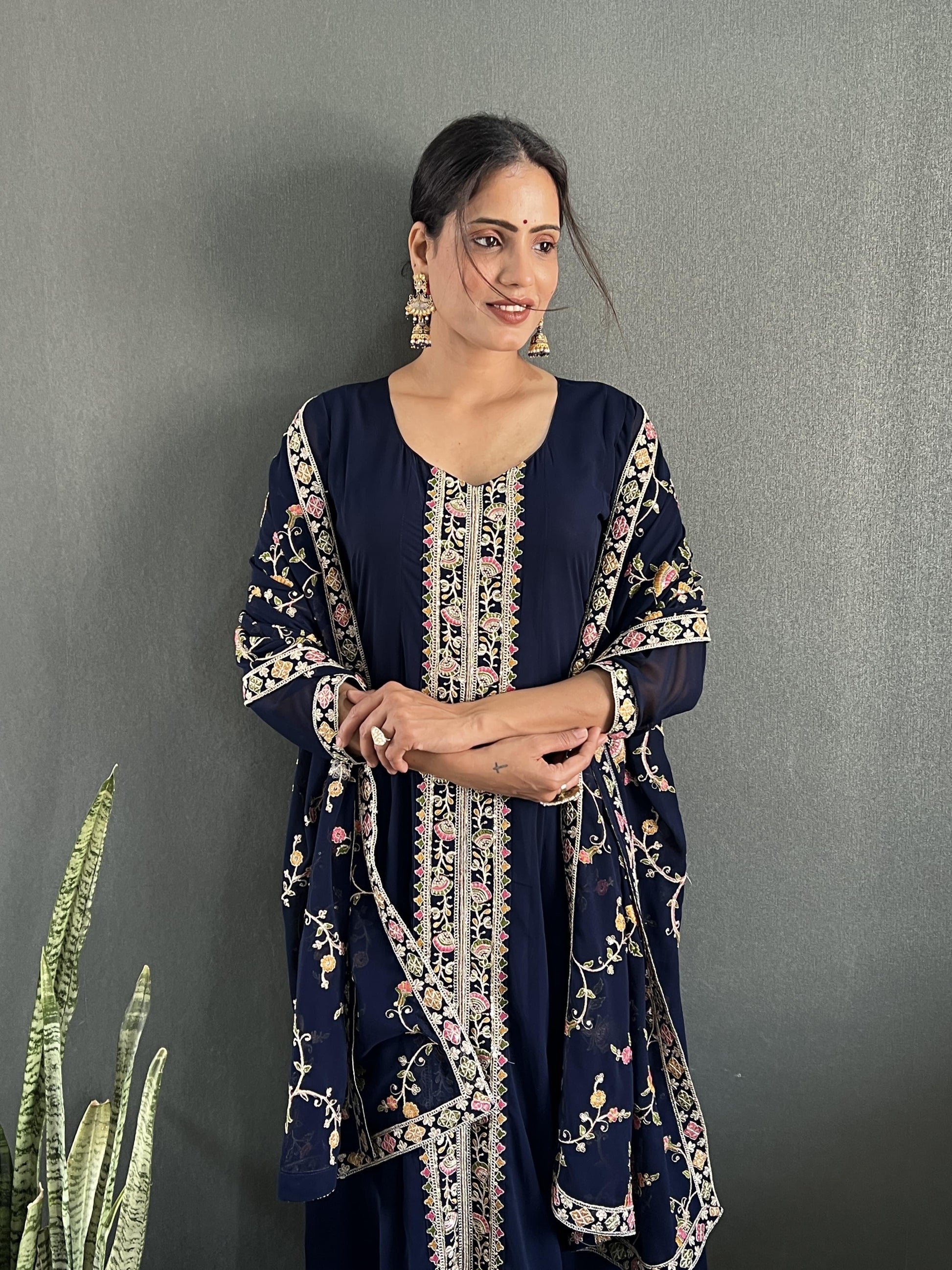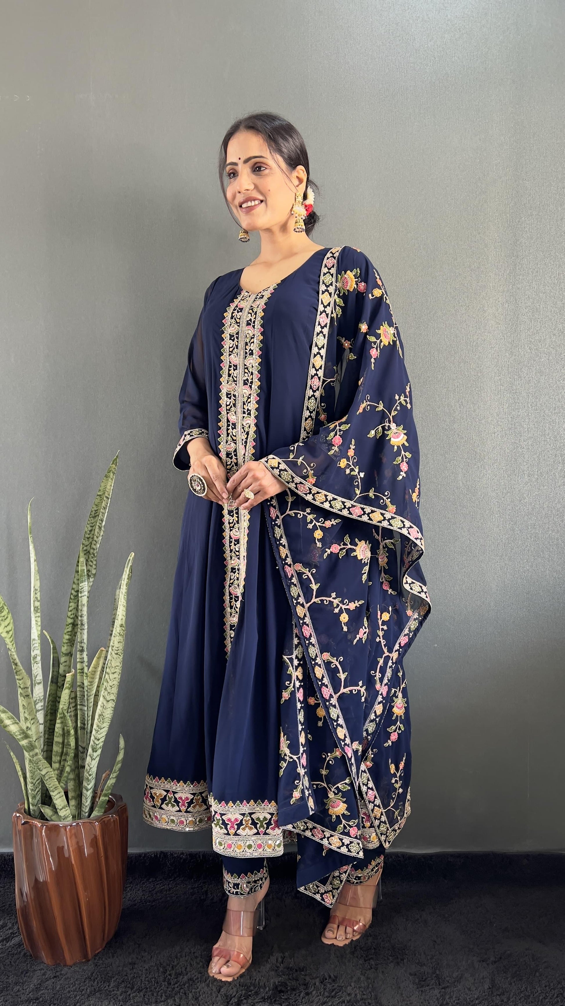 Elevate your ethnic wardrobe with this stunning Vichitra Anarkali Set featuring exquisite embroidery work. Designed for elegance and comfort, this ensemble is perfect for festive occasions, weddings, and special celebrations.