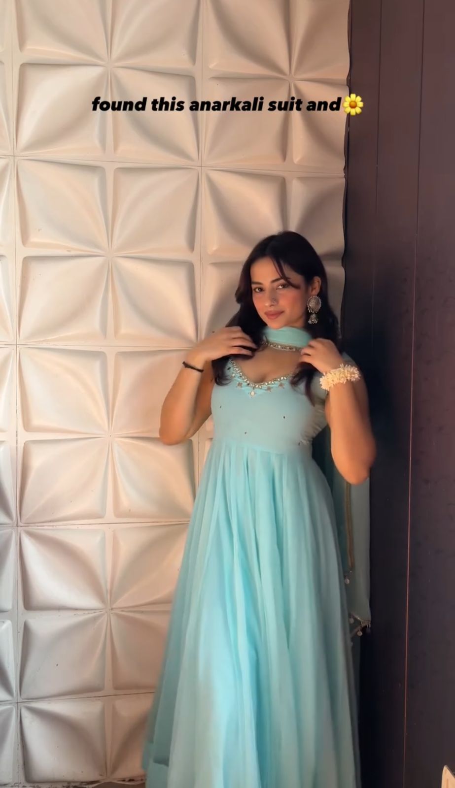 ANARKALI : Georgette Anarkali with Mirror work & Huge flair, Anarkali length 49.