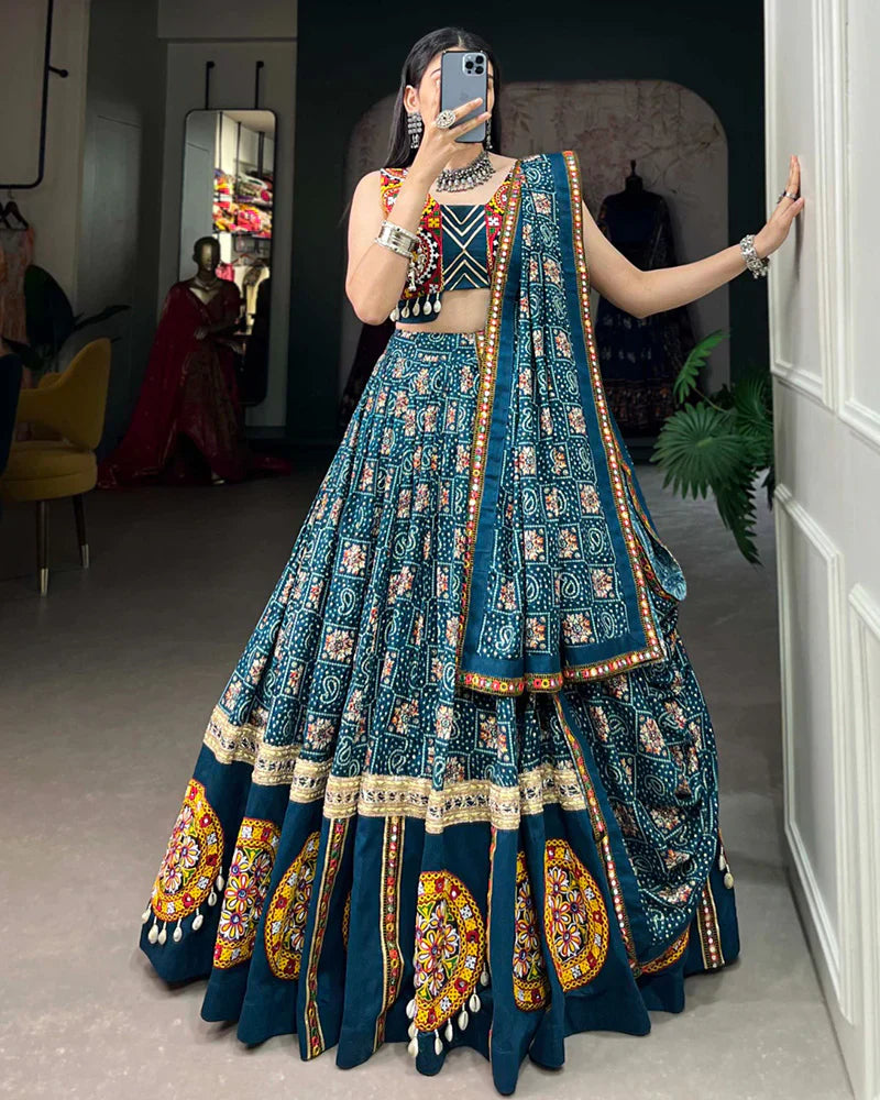 Lehenga Work : Printed With Foil Work And Gamthi Patch Work With Lace Touch Up
