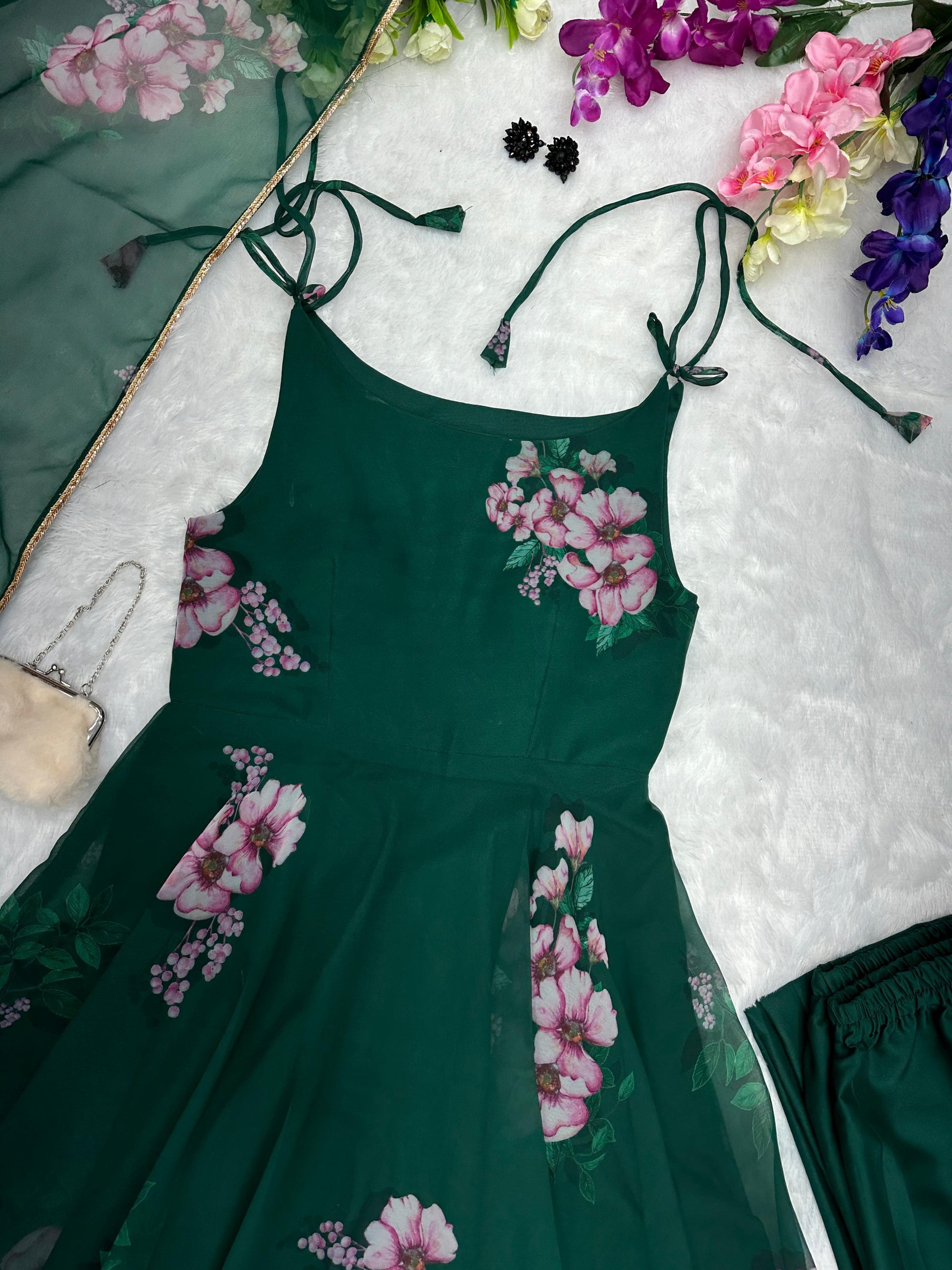 Fabric. pure Georgette silk Work Digital Printed With Huge Flair With Lace Border Type Fully Stitched Size XS(34), S(36), M(38), L(40), XL(42) Pant Fabric Butter Cotton Type Fully Stitched Dupatta Fabric Pure Georgette Work Digital Printed Lace Border Size 2 Meter Occasion Function & Party Wear Care Instructions Dry Clean Only